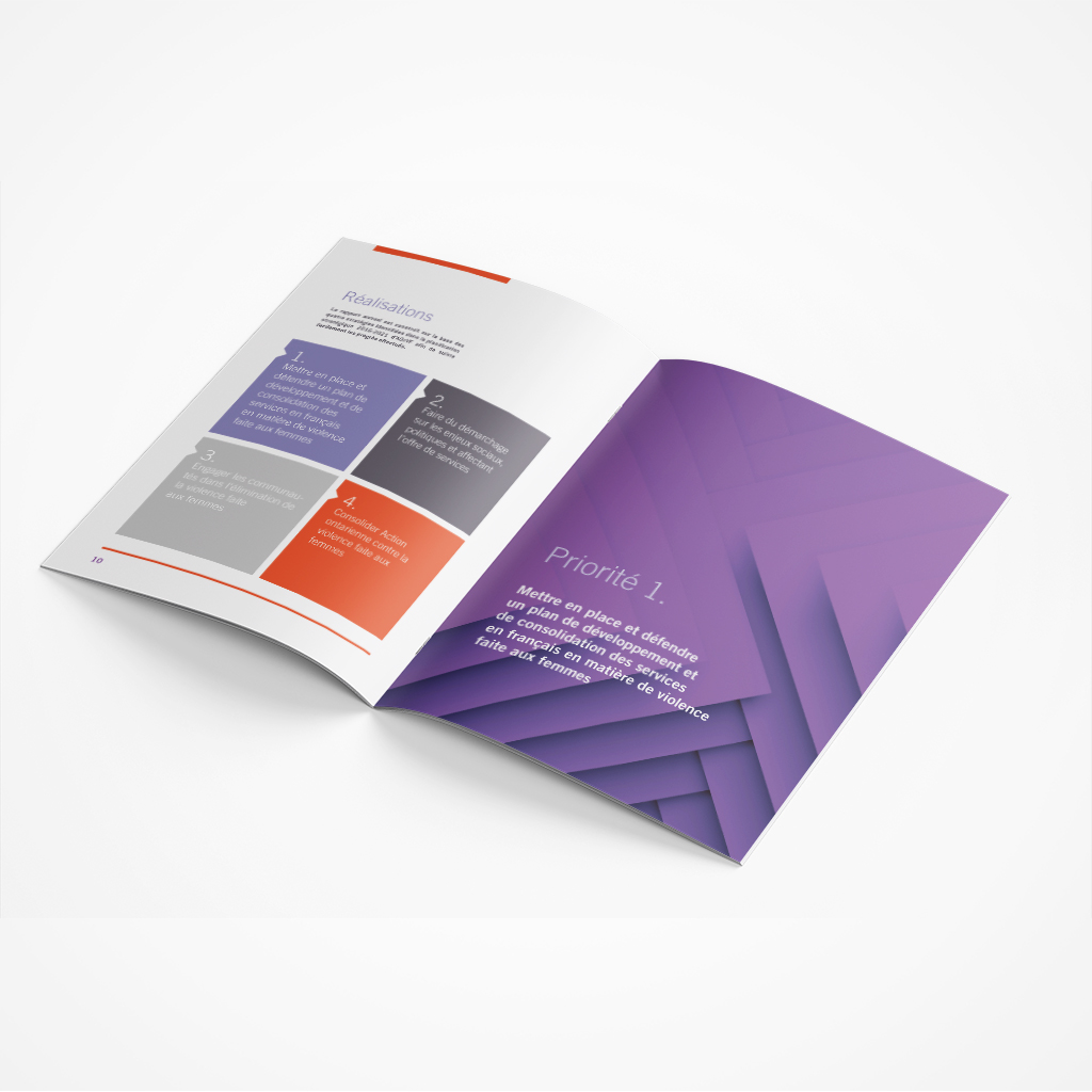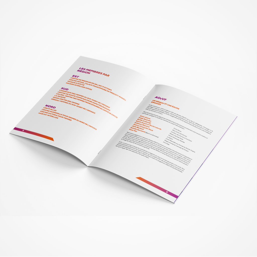Mandat publication : Design et mise en pages de divers rapports et publications en lien avec l’identité visuelle de l’Action ontarienne contre la violence faite aux femmes (AOcVF) : Ressources éducatives pour les membres sur les médias sociaux et médias traditionnels et les rapports annuels 2017/18 – 2018/19.